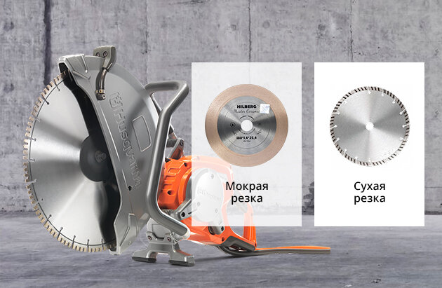 Помимо конструктивных особенностей, алмазные диски различают по методу распила: для мокрого и сухого реза. Рассмотрим, в чем их отличие и как выбрать оснастку для разных задач. Отличия Сухой метод Диски для сухой резки представляют собой сегментированные круги. Промежутки между сегментами отвечают за отведение пыли, охлаждение оснастки во время работы и увеличение производительности. Воздушного охлаждения бывает недостаточно, поэтому периодически устраиваются перерывы для охлаждения круга. С одной стороны, алмазный диск для сухой резки удобен в эксплуатации. С другой - например, в процессе сухой резки бетона алмазным диском образуется много мелких частиц обрабатываемого материала, поэтому необходимо использовать устройства по отсосу пыли, а также изделия для защиты органов дыхания, глаз (респираторы, очки). В противном случае есть риск попадания пыли и других мелких частиц в глаза и дыхательные пути. Сухая технология используется при работах в помещениях с проложенными коммуникациями,
