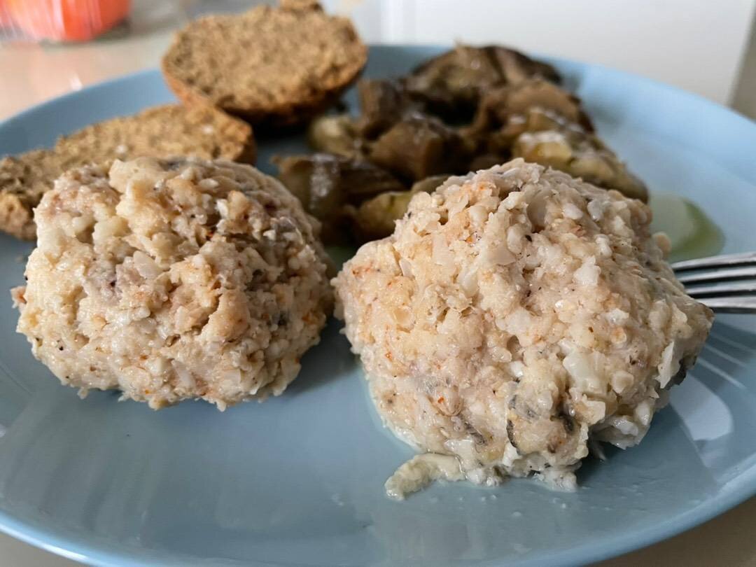 Ингредиенты: филе хека или минтая, цветной капусты, яйцо, овсяных хлопьев, Соль, Приправа Способ приготовления: Цветную капусту отвариваем 5 минут после закипания, охлаждаем. Измельчаем вместе с филе рыбы. Добавляем измельчённые с помощью блендера овсяные хлопья, яйцо, соль, приправу. Перемешиваем, формируем котлеты и готовим их на пару в мультиварке 15 минут.