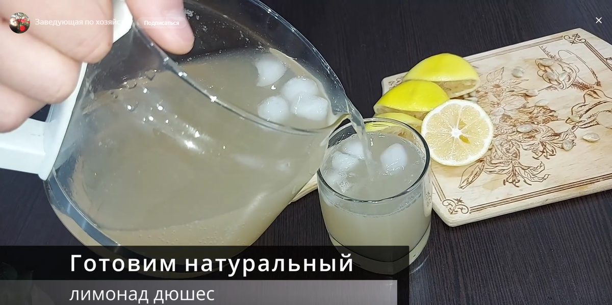 Всем привет:) Сегодня мы приготовим вкусный и натуральный лимонад "Дюшес" как в детстве! Рецепт простой, а результат вас приятно удивит своим вкусом)) 1.Возьмем 2 свежие груши и натрем их на терке, если есть соковыжималка то будет проще воспользоваться ей. Но у нас ее нет, поэтому мы натрем грушу, возьмем марлю и выдавим весь сок. 2.Полученый сок груши ставим на плиту, кипятим 5 минут и добавляем 2 столовые ложки сахара. 3.После кипячения сок груши нужно процедить. Но если вы любите мякоть в соке, то можете убрать этот пункт)) 4.Выливаем сок в кувшин.Желательно через марлю. 5. Возьмем 2 свежих лимона и выдавим из них весь сок. 6.Лимонад почти готов!) Осталось добавить лимонный сок к грушевому. А еще минералку и немного льда. Лимонад готов! Получилось очень вкусно! Обязательно попробуйте сделать также)) Если Вам понравилась статья, поставьте лайк, мне будет очень приятно :) Можете также посмотреть мое видео приготовления такого лимонада: