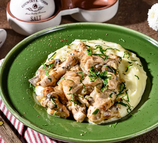 6. Сырный суп на курином бульоне с картофелем и грибами.