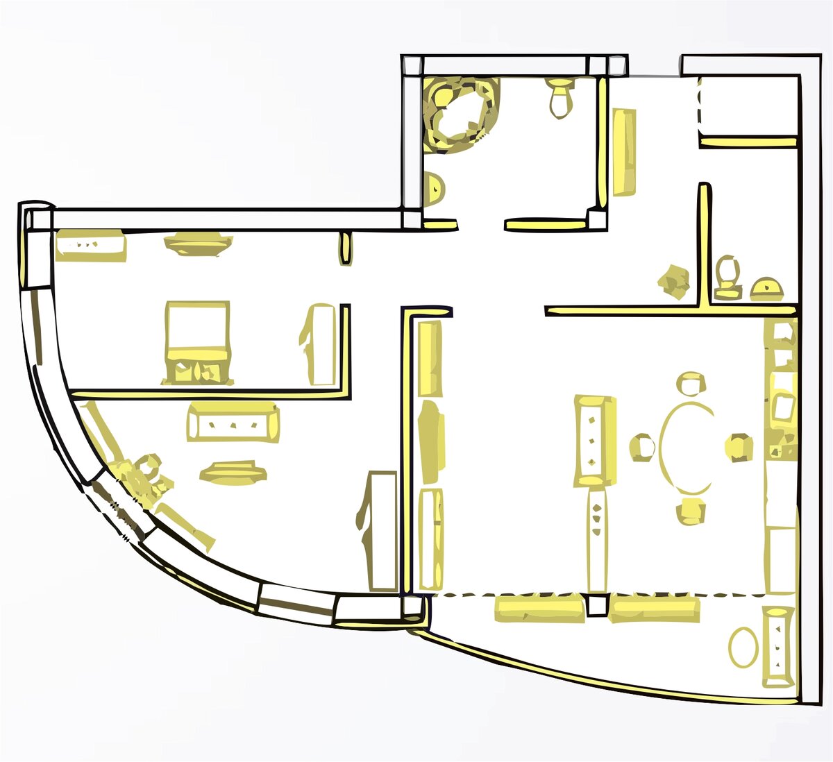 Почему-то часто квартиры со скошенными и закругленными внешними стенами выдают за элитное жилье. Хотя такая планировка далека от идеальной, а иногда и вовсе крайне неудобна. Так что старайтесь избегать полукруглых стен, не усложняйте себе жизнь.