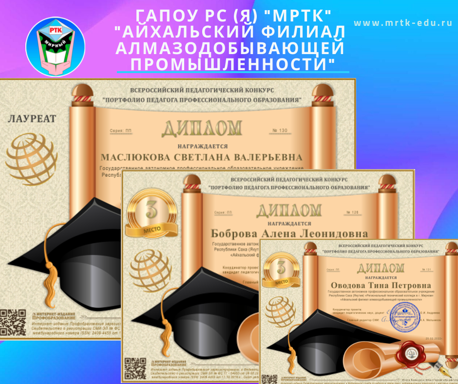 Портфолио преподавателей «Айхальского филиала алмазодобывающей промышленности» победили во Всероссийском пед.конкурсе.