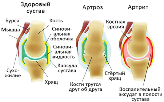 Воспалительные заболевания суставов называются артритами. От этой болезни страдает примерно каждый сотый человек. Особенно часто она развивается у женщин в возрасте от 40 до 50 лет. Воспаление может провоцироваться самыми разными факторами: Самостоятельными формами болезни являются такие артриты, как: Довольно часто воспаление сустава провоцируется перенесенной мочеполовой или кишечной инфекцией. В такой ситуации говорят о реактивном артрите. Характерные проявления артритов – боль, покраснение и повышение температуры кожного покрова, отечность и нарушение подвижности сустава. При инфекционных формах могут отмечаться лихорадка, озноб. Воспаление сопровождается накоплением в полости сустава жидкости — экссудата (серозного, гнойного, с примесью крови и пр.). В зависимости от формы болезни могут поражаться различные группы суставов. Так, ревматоидный артрит характеризуется симметричностью поражения, псориатический — локализацией преимущественно в концевых фалангах пальцев стоп и кистей, а