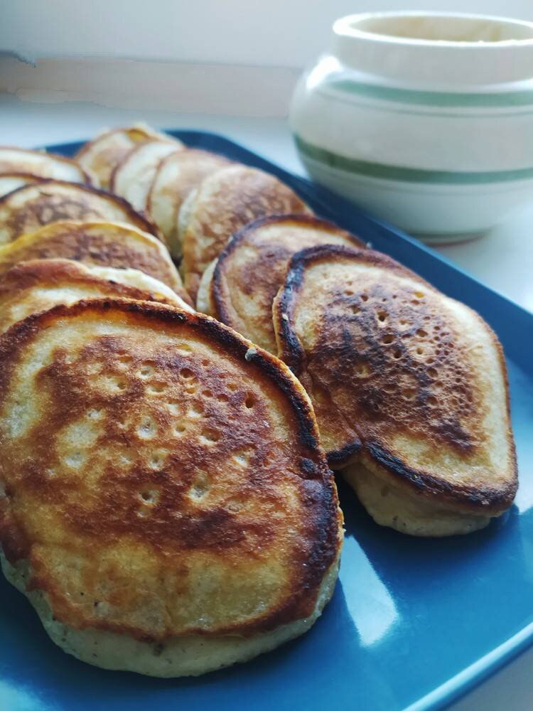 Начало Масленицы, начало весны и вкусности каждый день! #оладьи #масленица Ингредиенты: яйца, меда, крупный банан, топлёного сливочного масла, гашёной соды, муки (зависит от розмера яиц и банана), корицы Способ приготовления: Растопить масло. Яйца взбить с медом в пышную пену. Вилкой размять банан и добавить в взбитые яйца. Хорошо перемешать миксером. Влить топленое масло. Добавить гашеную соду, корицу и муку. Обжарить оладьи на сковороде.