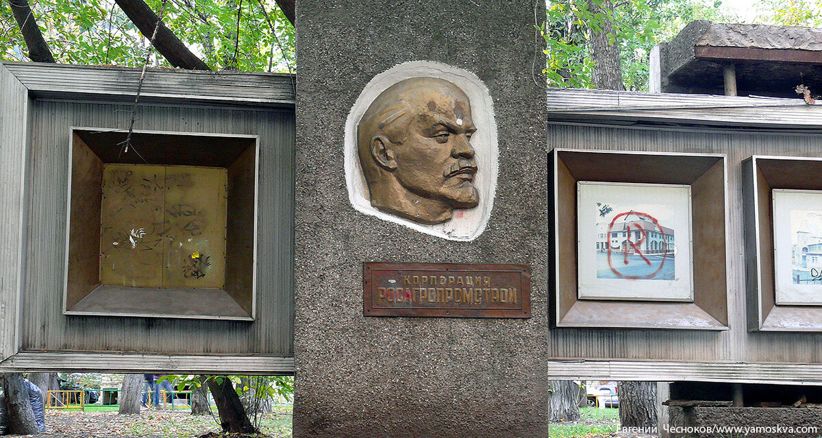 В сквере возле здания Росагропромстроя можно увидеть привет из 1970-1980 годов – профиль Ленина на Доске почёта.