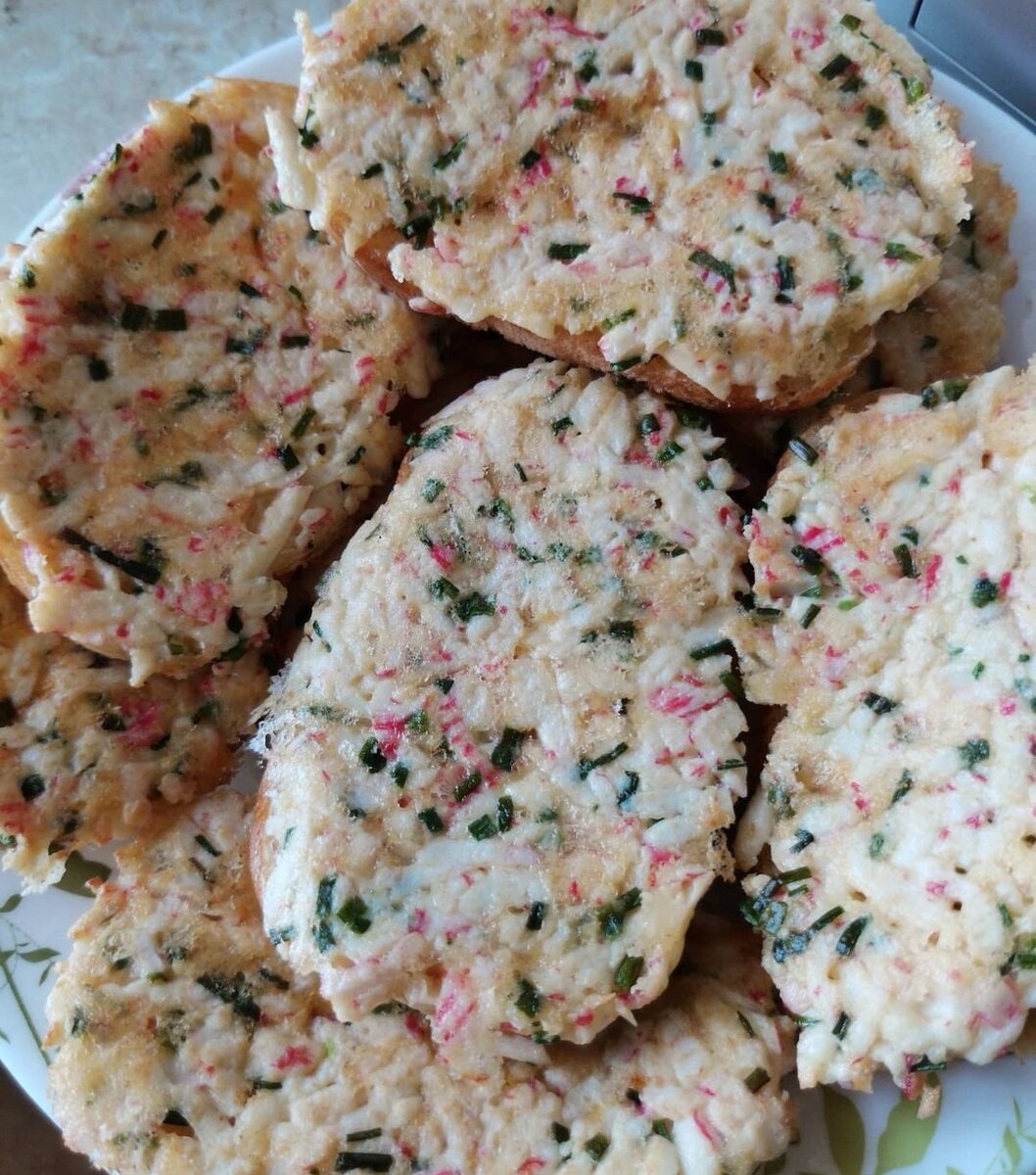 Шикарные горячие бутерброды.✅ Всего 4 ингредиента и батон 🥖❗❗❗ ⠀ 🔶Крабовые палочки 200 гр 🔶Сыр любой 100 гр 🔶Яйцо 2 шт средних 🔶Зелёный лук или любая другая зелень. Я кладу лук, много лука. 🔶Батон ⠀ Натереть на терку палочки и сыр, добавить яйца, зелень, все смешать. Берём вкусный и свежий батон, кладём начинку и жарим начинкой вниз, потом переворачиваем и чуть поджариваем с другой стороны. Все бутеры готовы. 👍👍👍 ⠀ Они безумно вкусные тёплые и холодные, мягкие, очень нежные. Когда в холодильнике ничего нет, ещё не такое придумаешь, но такие бутерброды понравятся всем. 🤗