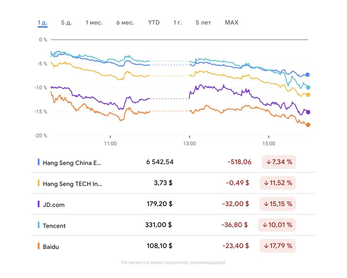Акции китайских компаний сильно упали в цене. Индекс китайских компаний, торгующихся за пределами Китая Hang Seng China Enterprises Index снижается на 7,3%. Пишут, что падение стало сильнейшим внутридневным обвалом для бумаг китайских компаний с ноября 2008 года. Индекс технологических компаний Hang Seng TECH Index теряет 11,5%. Основной причиной обвала назвали сообщения о том, что РФ обращается к Китаю за поддержкой. Инвесторы опасаются, что потенциальное сотрудничество с Россией может негативно отразится на компаниях, есть риски санкций. На динамику китайских акций также влияет вспышка COVID-19 в Китае. + Комиссия по ценным бумагам и биржам США (SEC) сообщила о том, что 5 китайских компаний, нарушили закон о подотчетности иностранных компаний и теперь появилась вероятность делистинга этих компаний с американских бирж. Причины кажутся не такими серьезными, и можно предположить, что инвесторы перестраховываются на фоне мировых событий. Если в геополитику все-таки втянут Китай, то п
