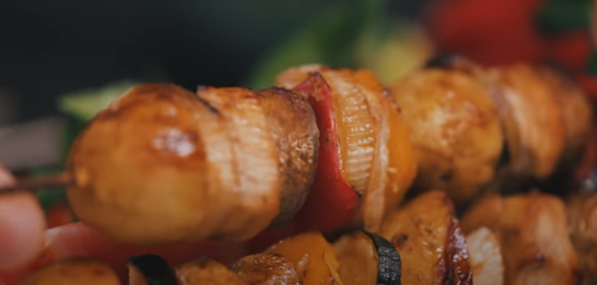 Приготовим куриные шашлычки. Смешиваем уксус, соевый соус, горчицу, орегано, сироп, оливковое масло и измельченный чеснок. Нарезаем грибы и овощи, заливаем частью маринада и перемешиваем. Затем нарезаем мясо, заливаем оставшимся маринадом и перемешиваем. Охлаждаем в течение 1-6 часов. Нарезаем картофель и запекаем в СВЧ при максимальной мощности 5-8 минут. Приправляем картофель. Нанизываем на шпажки все подготовленные компоненты.(мясо и картофель) Запекаем шашлыки в микроволновке, используя функцию Heat Wave. Благодаря этой функции они станут румяными и приобретут хрустящую корочку. Ну вот, наши куриные шашлычки наконец готовы. Выглядят они очень аппетитно, и уже хочется их попробовать. Кстати, у нас получилась заветная хрустящая корочка. Давайте пробовать! Курица получилась очень нежной и сочной и с хрустящей корочкой. Мне прямо напомнило детство, когда родители готовили курицу, тоже с корочкой, на Новый год. Прямо вот нахлынули воспоминания. Мне очень понравилось. Понравился маринад.
