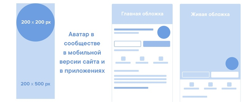 Минимальный размер целого аватара — 400х400 px. При загрузке фотографии учитывайте, что нужно будет выбрать фрагмент для миниатюры аватара. Система автоматически поможет вам выбрать подходящую по размеру область. Если у сообщества есть обложка, то в полной и мобильной версиях сайта, а также в приложениях будет отображаться только миниатюра аватара. Если у сообщества нет обложки, то в полной версии сайта будет отображаться целый аватар, а в мобильной версии и приложениях — только его миниатюра. Размер главной обложки для сообщества Размер главной обложки сообщества — 1590х530 рх. При загрузке изображения система автоматически поможет выделить подходящую по размеру область для обложки. Соотношение сторон классической обложки одинаковое на всех платформах — в полной версии сайта и на мобильных устройствах. Размер живой обложки для сообщества Для удобства мы подготовили схему с размерами, а также выделили области свёрну