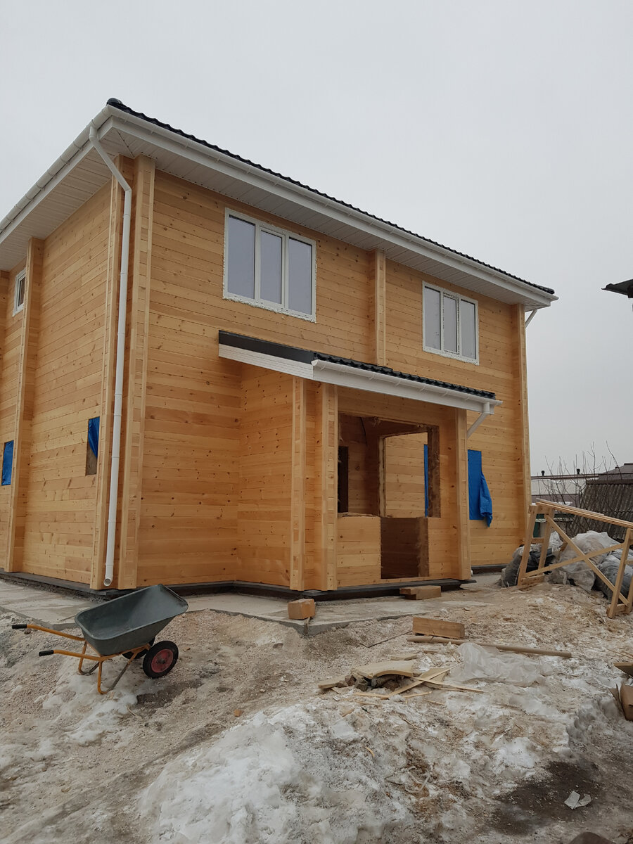 Стенокомплект пришел 1 декабря а строители закончили сборку 8 февраля. Основная сборка была выполнена двумя строителями.