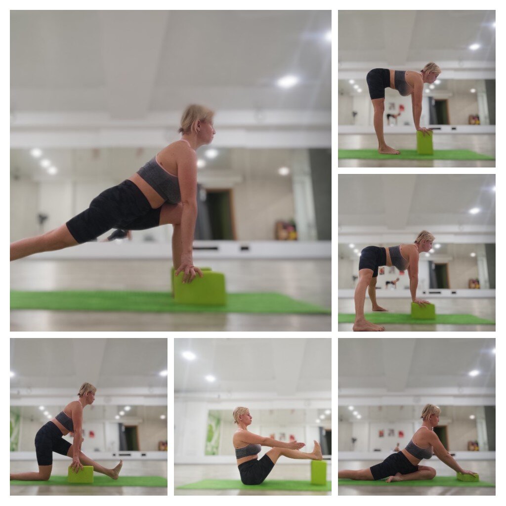 Использование кирпичей позволяет держать ровно спину, при наклонах выпрямлять ноги в коленях для растяжки, также это отличная опора под руки, под таз и ноги 👣👣👣