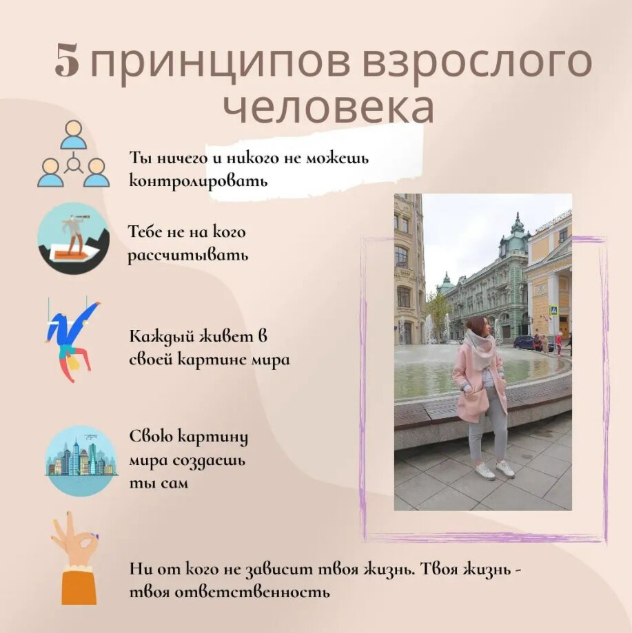 Часто мы забываем эти принципы и начинаем жить в ожиданиях от будущего. Это основная причина стресса. Стресс вынуждает нас вернуться к этим базовым настройкам. Коучинг тот инструмент, который поможет обрести силу в этих принципах. Чувствуете противоречие с этими принципами? Напишите в комментариях. www.mycoachjulia.ru