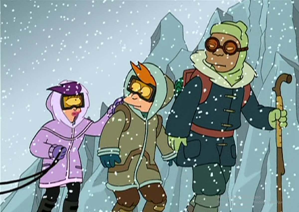 Фрай и Лила, сопровождаемые проводником идут по перевалу, Лила: