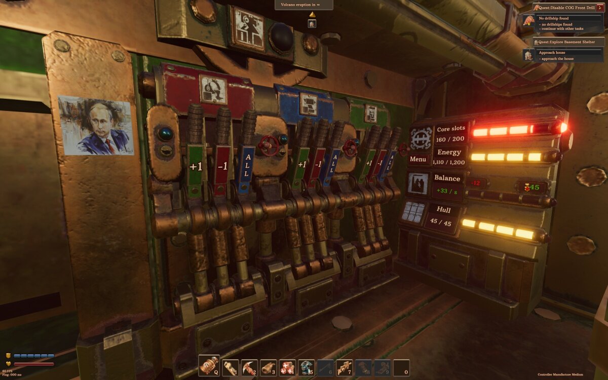 Тут я плавно перехожу к основному достоинству игры. Как вы видите на картинке к посту, игра сделана в стиле стимпанк — паровые машины, рычаги, угольное топливо и всё такое в том же духе. Жанр не новый, и примерно всё то же самое мы наблюдали, например, в Биошоке. Разница в том, что в Биошоке всё это было декорацией, а в Вулканоидах все кнопки, все рычажки и все табло — живые, это важная часть игры.