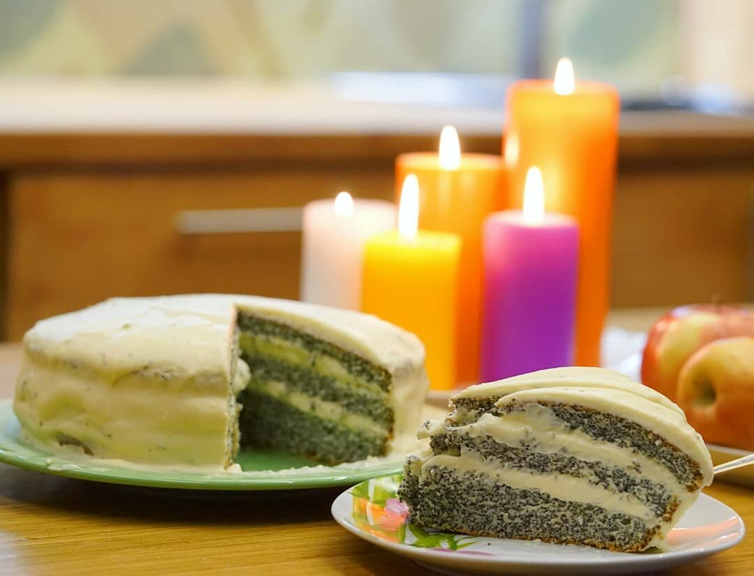Тесто: Крем заварной: Бисквит - белки отделить от желтков. Взбить с половиной сахара до "мягких пиков". Желтки взбить со второй половиной сахара. Вмешать мак. Соединить с белками. Вмешать просеянную с разрыхлителем муку. Добавить предварительно растопленное и охлаждённое до комнатной температуры масло. Выпекать при 180* тридцать минут. Охлаждённый бисквит разделить на три коржа. Для крема желтки взбить с сахаром добела. Добавить крахмал и снова взбить. Довести до кипения 20% сливки с молоком. Медленно влить в яичную смесь, тонкой струйкой, не прекращая взбивать. На среднем огне уварить до загустения. Снять с огня. Добавить масло, согретое до комнатной температуры. Тщательно перемешать. Охладить до комнатной температуры, застелив поверхность пищевой плёнкой, чтоб не образовалась корочка. Охлаждённый крем взбить миксером до гладкого однородного состояния. Добавить 33% сливки. Перемешать лопаткой. Промазать коржи. Дать пропитаться 6-8 часов. #выпечка #торт #маковый торт #рецепты #green_ma