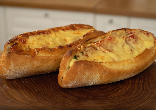 Лук репчатый – 1 шт. Кетчуп, майонез – по вкусу Для рецепта я взял два небольших багета размером около 18-20 см. Каждый разрезаем ножом по центру, от одного конца к другому.