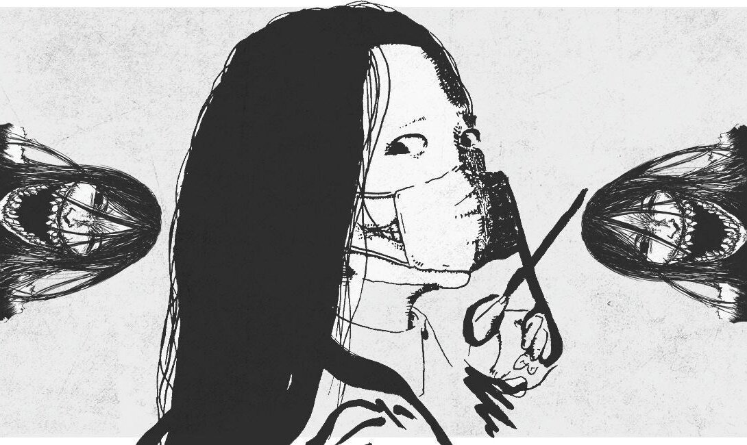 Кутисакэ-она дословно переводится как "женщина с разорванным/разрезанным ртом" Согласно легенде, женщина, в которую вселился злой дух, жестоко избивала маленького сына, за что была убита мужем, который разрезал ей рот от уха до уха. Озлобленная, она вернулась мстить, скрывая изуродованное лицо под медицинской маской Кутисакэ-онну в основном можно встретить по ночам, будучи одному. Подходя к человеку, она спрашивает у него: "Я красивая?", при этом ее рот закрыт медицинской маской. Если ответить "нет", она заколет человека ножницами до смерти; если же ответить "да", то она снимает маску и спрашивает: "А теперь?" Если ответить "нет", она убивает человека, а если "да", то она ножницами разрезает человеку рот, чтобы он стал таким же, как у нее. Легенда о Кутисакэ-онна получила наибольшую известность в Японии на рубеже 1970-х-1980-х годов, вызвав настоящую панику. Существуют даже сообщения о том, что администрации некоторых японских школ и колледжей в то время якобы рекомендовали детям