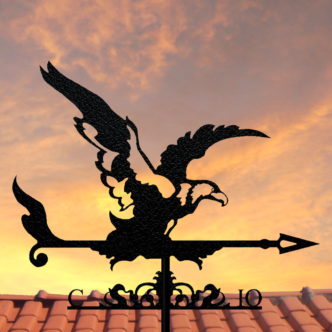 Сонная сказка в сказке. Здравствуйте,ребята! Вам, конечно же, интересно наблюдать за вечерним небом? Вот уже зажглись первые яркие звёздочки, солнечный диск закатился за горизонт, редкие облака стали совсем тонкими и невесомыми и словно растворились в ночной тишине, словно сахар в чашке с чаем. Вот именно такой вечер наступал в одном маленьком городе, неподалёку от дома с красной черепичной крышей, украшенной серебристым металлическим флюгером в виде орла. Вы, может быть, знаете, ребята, что эта интересная конструкция служит не только украшением крыши, но и показывает направление ветра. Да-да, так выглядят только простые флюгеры в обычных домах на улицах множества городов и стран. Но наш металлический орёл был волшебным и умел летать и даже понимал человеческую речь. Давным-давно металлический орёл сидел в продовольственном магазине на верхней полке, вокруг него было много всяких разных флюгеров в виде быстроногих лошадей, птиц-петушков, указателей сторон света, стрелок, но все они