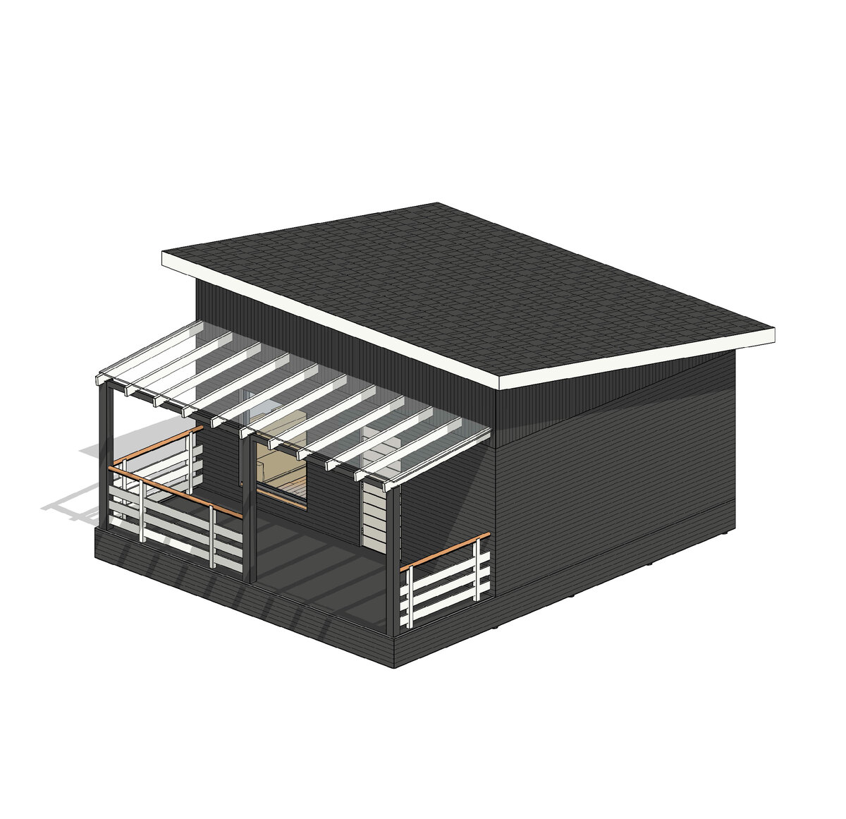 Представляю вашему вниманию проект маленького одноэтажного дома размером 5 на 6 м Общая площадь дома 24 кв.м. площадь террасы 14 кв.м. В доме имеется; - 1 cпальня - кухня гостиная - санузел - просторная терраса