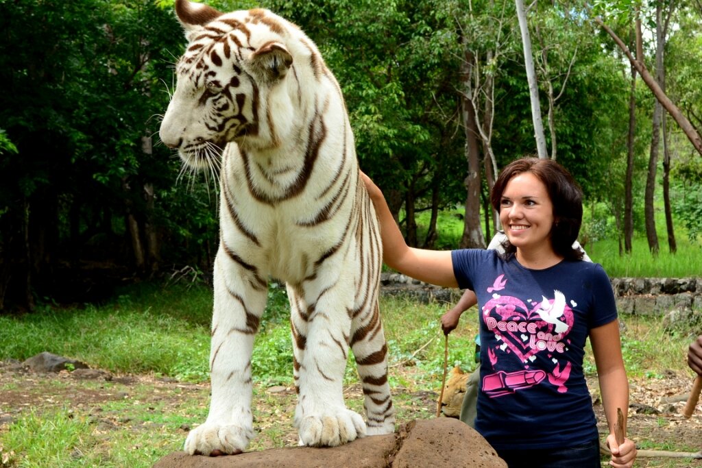 Я не шучу!! В 2011-12 я работала гидом на о.Маврикий. И там был такой аттракцион - в парке в вольерах жили львы, тигры и гепарды. К ним можно было зайти внутрь вольера и сфотографироваться с ними. Стоило это удовольствие что-то типа 80 евро/1 вид животных. Ещё евро за 150 можно было погулять со львом - идете группой, рядом 2 гида и лев. Можно было его за хвост подержать)) Многие туристы говорили, что животным что-то колят, но лично мне так не казалось, потому что они были очень игривые и не выглядели замученными. Ну а там кто знает, конечно. Так вот, я, как гид, ходила к этим львам по 2-3 раза в неделю, и ещё за это деньги получала 😂. Поначалу страшновато было, потом стало вообще отлично) Однажды, пока мы с туристами были в клетке, 2 гепарда начали играть между собой, и один случайно задел лапой мою подругу. Поцарапал ей бедро. Она потом ещё 2 недели с гордостью демонстрировала всем царапину - вот, посмотрите, меня поцарапал гепард!!!!😂😂 Весело было)) Ещё Наташа (подруга) любила бол