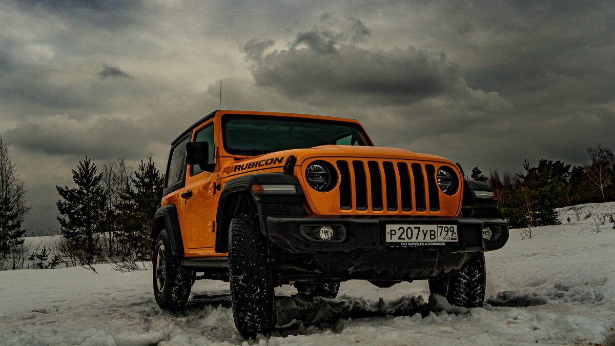 Как вы знаете, иногда я беру для тестов разные автомобили, и всячески их мучаю. Обычно это публикуется не тут, но видимо пора и сюда заходить=) Сегодня, как вы понимаете разговор не про это совсем. Достался мне в цепкие лапки автомобиль. Но не простой, а весьма интересный Jeep Wrangler Rubicon в ярком оранжевом цвете. Первые несколько дней автомобиль просто существовал в городском трафике, ничего не делал, и просто запрыгнул красиво на нечищеную парковку около дома. По сути — он просто проигнорировал преграду, собрал свой маленький хайп и поехал дальше. Однако дальше было сильно хуже, щас расскажу почему. День съёмок номер раз. Мы катались по живописному полю, снимали разные ракурсные кадры, и решили поймать закат на пригорочке в снежном поле. Ничего не предвещает беду, правда? А вот ничего мы не угадали, вернее я не угадал. На пути к точке почувствовал я лёгкое пробуксовывание у колёс.