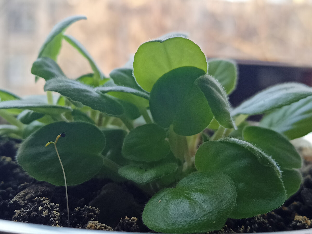 Фиалки деточки порадовали. Поль-Баньян стараются растут вовсю, выращенные из листочка. Но рядом поселился неизвестный субъект...Из любопытства решила оставить семечко. А вдруг что-то ценное растёт? Бывает такое, как вы думаете?