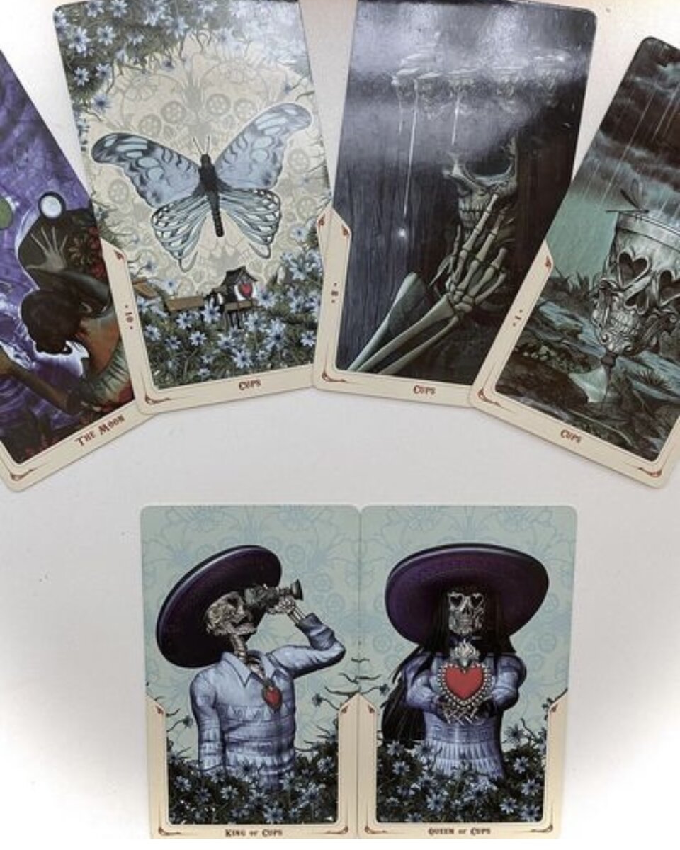 Ее основное отличие – это красивая, качественная рисовка старших арканов в традиции культа Святой Смерти, который берет начало в Мексике и персонифицирует тринадцатый Старший аркан. Энергия колоды не темная, скорее нейтральная, отчасти это было достигнуто хорошим чувством юмора автора. Герои колоды – жители обратной стороны жизни, у них кипит такая же жизнь, что и у нас, только интереснее.