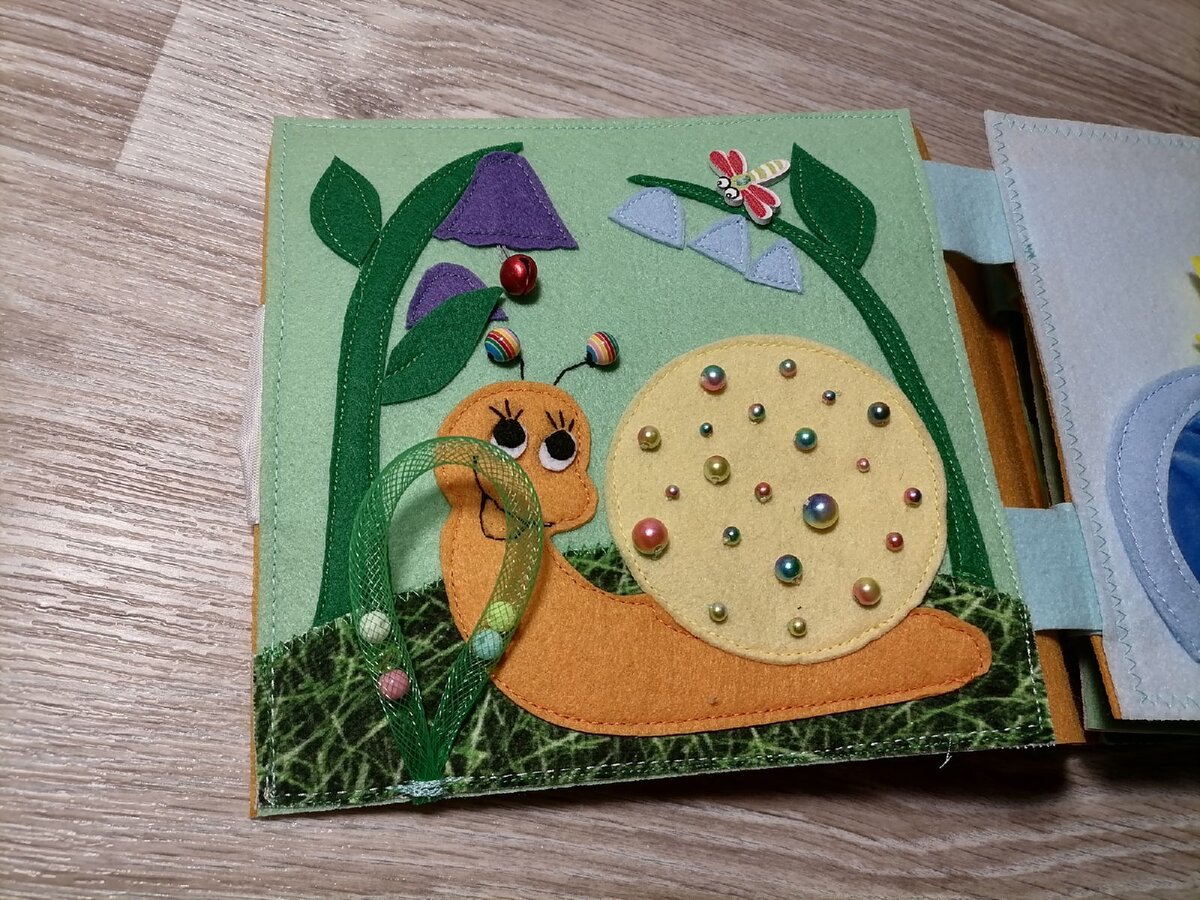 Фетровая развивающая книжка для детей от 6 месяцев. 8 страничек Различные звуковые элементы Разнообразные тактильные ткани, при прикосновения к которым развиваются тактильные ощущения ребёнка. Развиваем мелкую моторику, координацию движения ручек,, стимульоуем навык "глаз-рука", тем самым развиваем речь ребёнка.