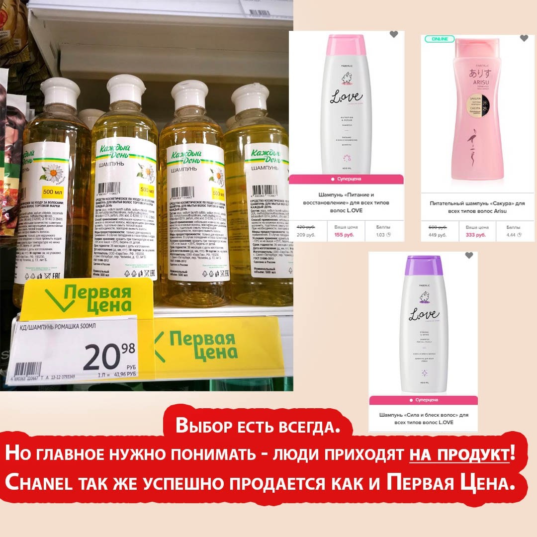 Цены поднялись, покупатели уходят?😱 Такой мысли нет в моей голове. Во первых - цены поднялись повсеместно и на фоне всеобщего поднятия Фаберлик так и остался выгоден для покупок. 💰 Во вторых - люди к нам приходят НА ПРОДУКТ, по меньшей цене и раньше всегда можно было купить в другом месте, можно и сейчас. Это видно на первой картинке. В третьих - Chanel успешно продается уже много лет. В среднем шариковый дезодорант у них стоит 3000 рублей, уходовая косметика около 10000 рублей за позицию. Вы реально думаете, что аудитория Фаберлик уйдет? СЕГОДНЯ 13.03.2022 я сфотографировала некоторые ценники в магазине Атак. При чем заявлено, что сам Атак поднял цены не более чем на 5% на товары общего потребления. Так что я смею предположить, что в остальных местах все это стоит на много дороже. А в этом магазине новые партии в любом случае тоже вырастут в цене. Да, всем нам сейчас тяжело и морально, и финансово. Но если адекватно оценивать ситуацию, то картина меняется на глазах. ❤️