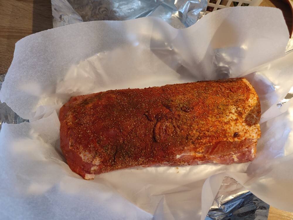 Швидко, смачно, ситно та святково... #м'ясо #свинина Ингредиенты: Карбонад свинина , Спеції: , сіль, копчена паприка, коріандр, часник, сванська сіль Способ приготовления: Карбонад помити, просушити паперовими рушниками, обсипати спеціями, сіллю та гарно промассажувати м'ясо... Взяти форму, вистелити фольгою та пергаментом та вкласти наше м'ясо, гарно завернути та запікати в розігрітій духовці при температурі 180 гр. 50 мин. Потім розвернути і ще 10хв. Тільки не перетримайте, бо буде сухе. Смачного💛💙