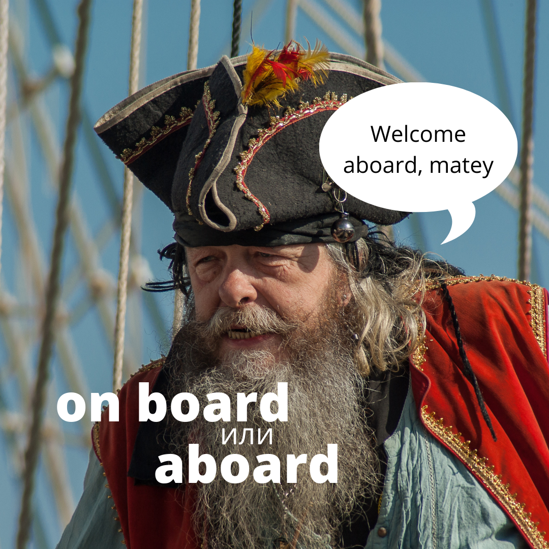Здравствуйте, мои дорогие читатели. Как там говорится "Long time, no see". How have you been doing? А теперь переходим непосредственно к вопросу. Welcome on board или aboard? Есть ли между ними вообще какое-то различие? Выражение с aboard появилось в языке раньше, но на самом деле, эти выражения взаимозаменяемы, когда речь идет о корабле, самолете, поезде, автобусе: The plane crashed but all the passengers on board / aboard survived. Welcome on board / aboard может использоваться и в переносном смысле, когда мы приветствуем нового члена команды: Welcome, Jack. It's good to have you on board / aboard! Как отвечать на "Welcome on board" Если вы буквально сели на автобус, поезд, самолет или зашли на палубу корабля, то тут ничего особенного от вас не требуется. Скажите просто "Спасибо". Но если это выражение было вам адресовано в условиях делового общения, например, когда вы пришли в новую компанию, попали в новую команду, присоединились к какому-то бизнесу, то можно воспользоваться следу