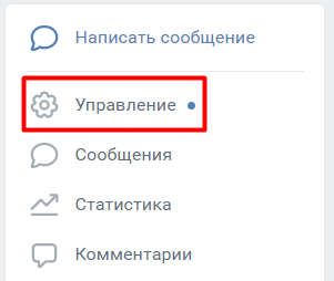 - Открываем созданное сообщество. В правом верхнем углу нажимаем "Управление"