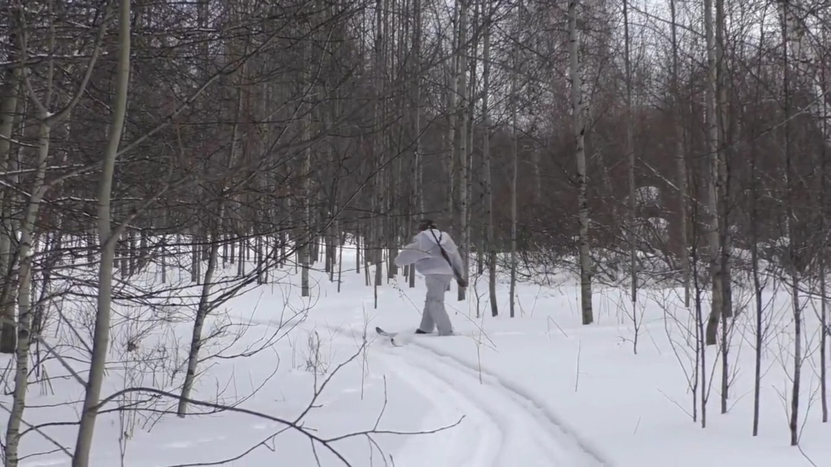 Сделать всё правильно и взять этого зайца... У нас не получалось с осени. Этот специалист всегда уходил не вредимым. Уходил на большой круг и своё излюбленное место не возвращался дня три. В этот раз мы зная пути, по которым уходит заяц, оставили мотобуксировщик метров за 400 от места, где решили поставить Сашу на номер, т.к. шуметь побоялись, уйдёт. Идя тихо и не разговаривая, Саша остаётся там где мы думаем, что взбуженный заяц будет уходить. А я ухожу дальше и начинаю потихоньку двигаться по лесу, пытаясь поднять косого. Впереди три, сросшихся в один, массива. Где сейчас заяц мы не знали, поэтому встретив на пути свежий след, начинаю заходить так, чтобы заяц пошёл в сторону застрела. Обрезаю, обрезаю и понимаю, что заяц если уже не ушёл, то лежит от Саши очень близко. Выхожу на лыжню, прибегаю мимо Саши, обрезаю и понимаю, что косой не вышел и лежит совсем рядом. Ветер дует на меня - это на руку. Захожу опять в лес и потихоньку двигаюсь на лыжах. Вижу свежие жировоч