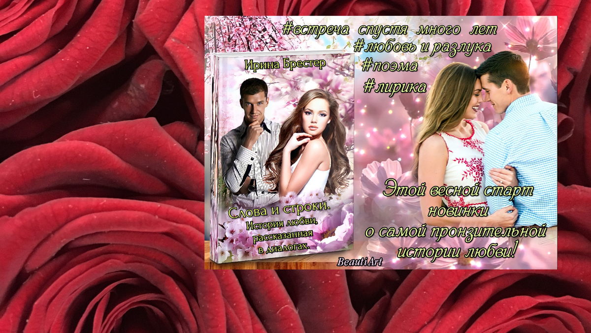 АНОНС!!! Дорогие мои читатели! Нравятся ли вам истории любви? А если эти истории заключены в поэтические строки? Я приготовила для вас по-настоящему весеннюю историю любви. И совсем скоро она увидит свет. Я жду этого. А вы? Небольшой спойлер и приятный сюрприз - смотрим)) Видео-открытка создана волшебницей @irinadanilova72 (Ирина Данилова) и самым красивым сообществом "BeautiArt от Ирины" https://vk.com/iibieauty (И это только её первый подарок для меня и для вас) P.S. Стартуем на #ЛитРес. Следите за новостями)) По ссылке доступна видео-открытка https://vk.com/irina_brester?z=video172101089_456239059%2F7eb19586b0b5e892bc%2Fpl_wall_172101089