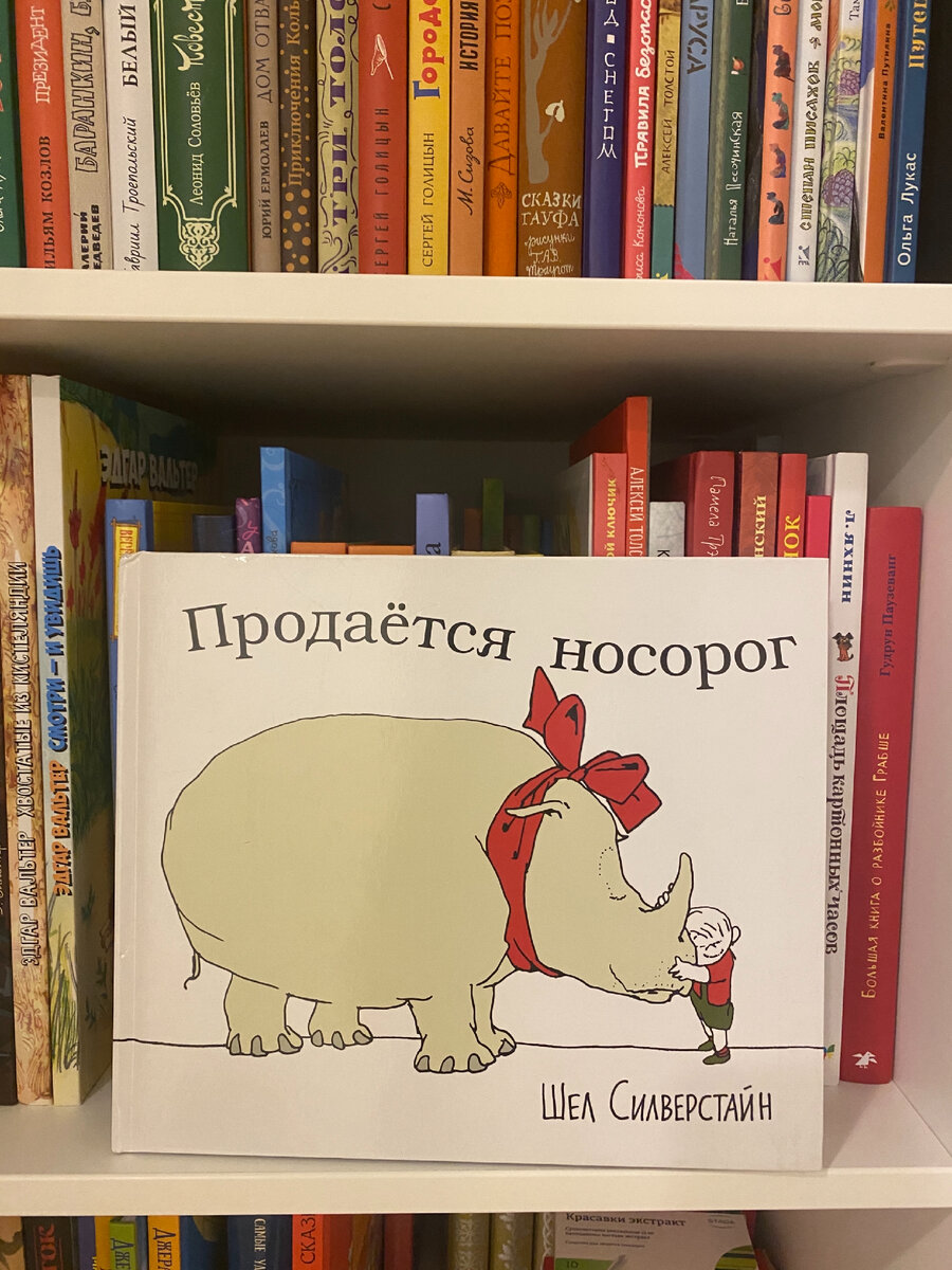 Начать рассказ о детских книгах хочу с того, что покажу уже редкую книгу, которую мне удалось поймать совсем недавно. Это книга-картинка американского автора Шела Силверстайна, которую выпустило издательство «Розовый жираф» аж в 2012 году и называется она «Продаётся носорог». Внутри книги нас ждут чёрно-белые рисунки с небольшими подписями. Это краткое руководство по тому, как можно любить, дружить и играть с носорогом, если он поселится у Вас дома. Конечно, никаких банальных советов и приёмов тут ждать не надо. Поэтому книга вызовет улыбку и желание у ребёнка включиться в игру и дальше фантазировать. Например, носорог может быть прекрасной вешалкой для пальто, а ещё он лучше всех чешет спину и на нём так удобно сидеть. Вот только лучше не разрешать ему садиться на Вас или быть очень аккуратными, когда он проходит мимо, а то может и отдавить ногу. Книги автора издаются по всему миру уже более 60 лет. В нашей стране известны «Щедрое дерево» и она у нас тоже есть дома, а ещё «Лафка