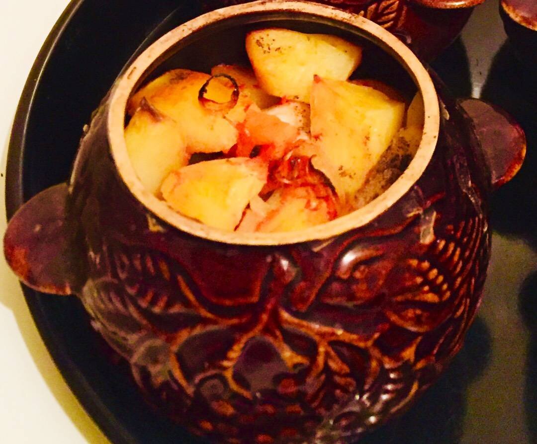 Ложкой в каждый горшочек заливаем томатной заливкой картошку. Накрываем горшочки и ставим в разогретую до 200 градусов на 1 час.