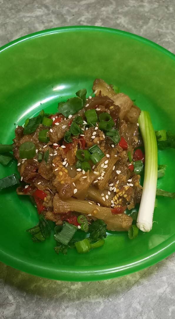 Ингредиенты: Баклажана, Корень имбиря, Зеленый лук, Чеснока, Перец чили , Сахар, Соевый соус, Уксус, Растительное масло, Кунжут Способ приготовления: Нарезаем баклажаны брусочками по 6-8 см. Корень имбиря натираем. Чеснок пропускаем через пресс. Перец чили разрезаем пополам и режем мелко. Зеленый лук мелко рубим и оставляем часть для украшения. Баклажаны солим и оставляем на 15 минут, чтобы убрать горечь. Затем промываем водой. Обжариваем на растительном масле в один слой в несколько подходов. На той же сковороде обжариваем немного имбирь, зеленый лук, чеснок и перец чили. Возвращаем баклажаны к другим овощам, добавляем сахар, соевый соус и уксус, перемешиваем и жарим 1-2 минуты. Подаем баклажаны по-сычуаньски, украсив зеленым луком и кунжутом. Простая кухня может быть разнообразной. 😋😎 Приятного аппетита!🤗