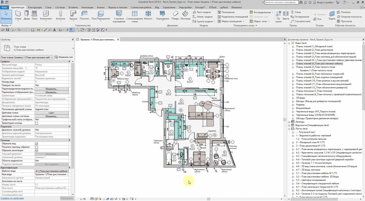 В статье рассмотрен Шаблон для проектирования интерьеров из курса “Revit для дизайнеров интерьера”, в котором каждая функция Revit настроена под интерьерное проектирование, и собран накопленный годами материал: