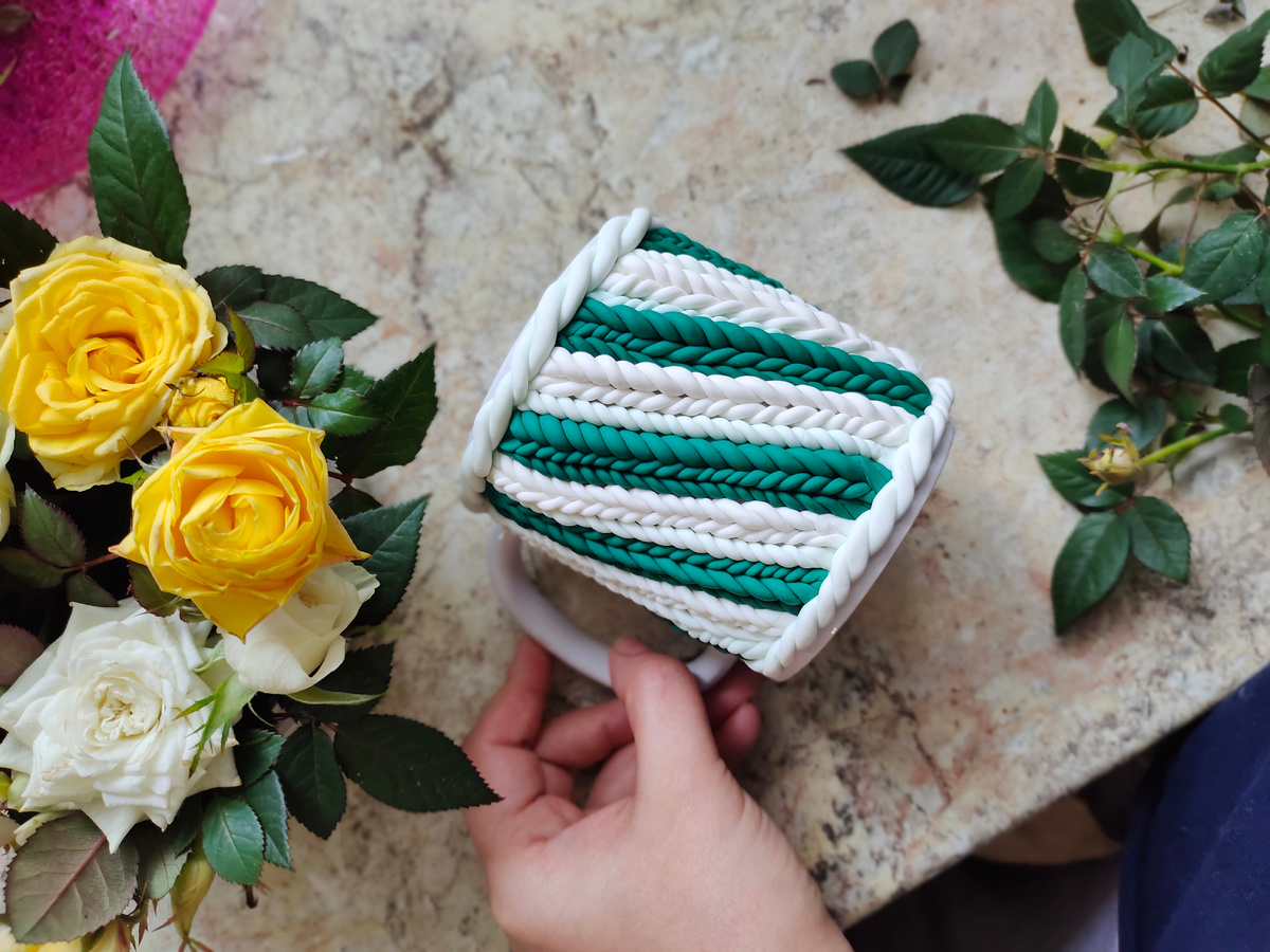 🧶🧶🧶 Ситуация следующая: Заказ поступил на кружку и ложку с вязкой. Прислали примерный эскиз и цветовую гамму для будущей работы. 🧶🧶🧶 Цвет заказчик выбрал белый с зелёным как в данной схеме.⬆️ 🧶🧶🧶 После обсуждений всех необходимых деталей заказчик внёс предоплату и я приступила к работе. По итогам вот такая получилась работа. Ответ от заказчицы пришел на следующий день , дословно: " Мне не нравится как получился декор на ложке, это не то что я себе представляла, я планировала увидеть шнур а не нить. в таком виде я заказ забирать не буду." 🤔🤔🤔 И конечно о всяких шнурах изначально в заказе ни слово не было. Но если даже предположим что все же были..... Это глина а не шнур и не нитка 🙈😁. В заказе всегда можно что-то переделать ,что-то добавить или убрать, в пределах разумного конечно. Есть конечно вещи и нюансы о которых знает только мастер , так как заказчик не знаком с данными материалом. Но это все обсуждается и приходится к общему знаменателю. В данном случае во