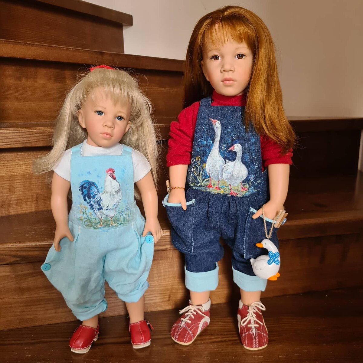 В 2003 году два гиганта игрушечной индустрии Steif & Gotz объединились, чтобы удивить всех коллекционеров и любителей кукол (куклы уместны как в игре, так и в витрине) поистине шедеврами. Это были удивительные, реалистичные, красивые куклы. Самира, Шанталь, Катарина, Жизель, Норе, Надя и др. Обязательным аксессуаром у этих кукол стала позолоченная сережка-"пусета" в левом ухе с клеймом Steif, а костюмы украшают мордочки плюшевых медведей с желтым ярлычком Steif. Кукол можно использовать в игре, расчесывать, переодевать... Но, чаще всего, сейчас это коллекционные редкие куклы витринного хранения. Мои красавицы Шанталь 58 см и Дженни 46 см. Шанталь полностью виниловая кукла, Дженни с мягконабивной частью в зоне шортиков. Родной аутфит я сняла, бережно храню. А кукол наряжаю, переодеваю, играю. Особенно хороши куколки на улице. Живые девочки!