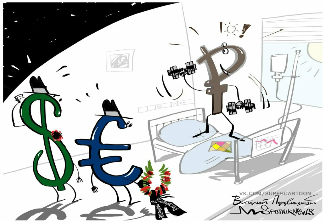 Заканчивается контракт на поставку угля, нефти, газа, стали (ненужное зачеркнуть, нужное добавить) с условной Тариманией. Новый контракт хотите? Пожалте. Но только в рублях. Где рубли взять? Да вот же они, в наших банках, покупайте. (Которые под санкциями, только у них, вот это был бы ход!) Не хотите - оставайтесь безо всего этого. Мы всё это найдём куда поставить. А это - это ресурсы, это железо, это жpaтва, в конце концов. Это реальный сектор экономики. Это то, что можно руками потрогать или съесть, запивая вод... водой, естественно ( в случае с газом, да, потрогать нельзя, зато можно понюхать или его поджечь). Это то, без чего жить нельзя!