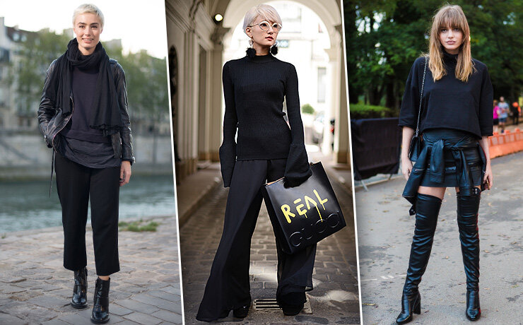 Total black look — вечная модная классика, одинаково любимая как стилистами и дизайнерами, так и «рядовыми» модницами. Если ты тоже любишь этот цвет и носишь в нём монохромные образы, тебе понравится наша подборка. Согласись, свежие модные идеи для образов в стиле total black никогда не бывают лишними. Этот цвет всегда актуален и уместен. Листай галерею и вдохновляйся на новые стильные свершения! #стильные образы #стильные советы #что надеть #что сейчас модно #что сейчас носят #что носить весной #total black #черный цвет #образы на каждый день #образы на весну