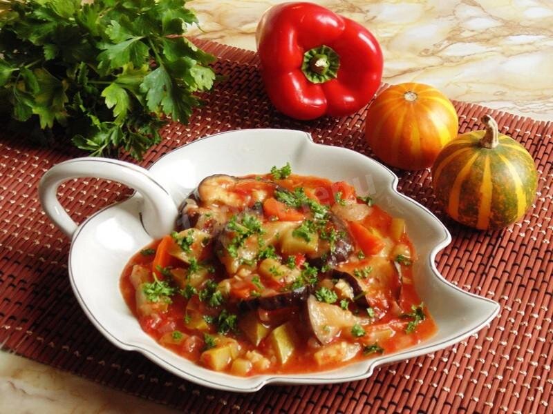 Вкусное рагу из баклажанов идеально к постному столу. Конечно, лучше его готовить в сезон, когда на грядке созревают свежие сочные овощи. Но баклажаны есть в продаже круглый сезон. Поэтому с приготовлением блюда не возникнет проблем. Существует несколько вариантов приготовления рагу. Во-первых, баклажаны можно тушить самостоятельно, дополнив различными соусами и семенами. Во-вторых, овощи можно дополнить репчатый луком, морковью, помидором. В первых двух случаях получится полноценный гарнир, который может использоваться и как самостоятельное блюдо. При желании рагу из баклажанов можно дополнить мясом. С овощем отлично сочетается свинина, говядина и курица. Мясо желательно тушить вместе с овощами. В этом случае компоненты пропитываются соками друг друга. В результате блюдо получится более сочным и ароматным. Баклажаны обладают выраженным насыщенным вкусом. Дополнять его большим количеством специй не стоит. А вот посыпать готовое рагу свежей зеленью перед подачей стоит. Кроме того, бакла