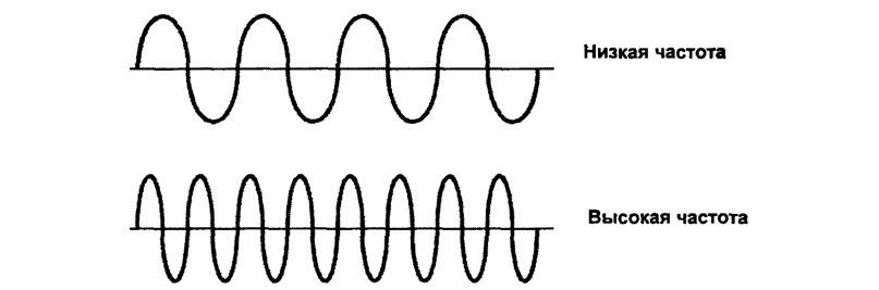 Высота звука будет зависть от частоты колебания волн. Чем чаще происходят колебания — тем выше нам кажется звук, если реже — то наоборот ниже.