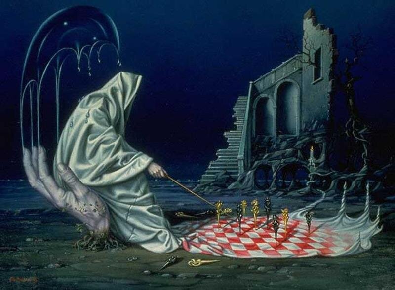 Фигуры взяв рукой, Он двигал их по клеткам.