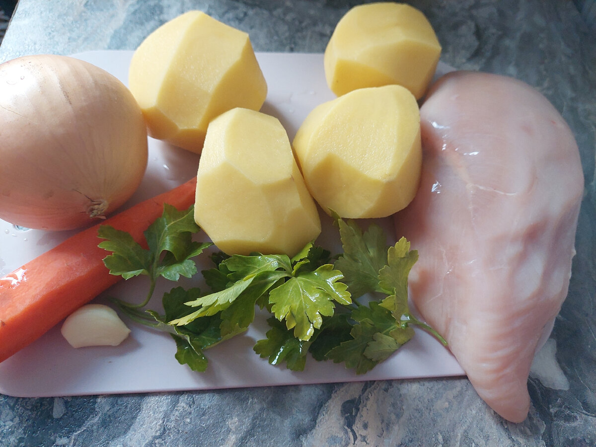 Курица Картофель Морковь Лук Чеснок Зелень (любая на ваш вкус) Сметана Соль Перец Курицу (любую часть, я взяла филе, если возьмёте бедро будет более наваристый бульон) промываем и нарезаем. Чистим овощи , нарезаем произвольной формой. Разогреваем мультиварку и на подсолнечном масле обжариваем курицу пару минут, затем добавляем лук, морковь и картофель с каждым ингридиентом обжариваем пару минут до полуготовности. В сметану добавляем мелко нарезанный чеснок, соль ,перец и немного воды. Я брала 200гр сметаны и 100гр воды. Полученный соус выливаем в курицу с овощами. Включаем на режим тушения и тушим 40-60 минут. За 10 минут до готовности добавляем рубленую зелень.