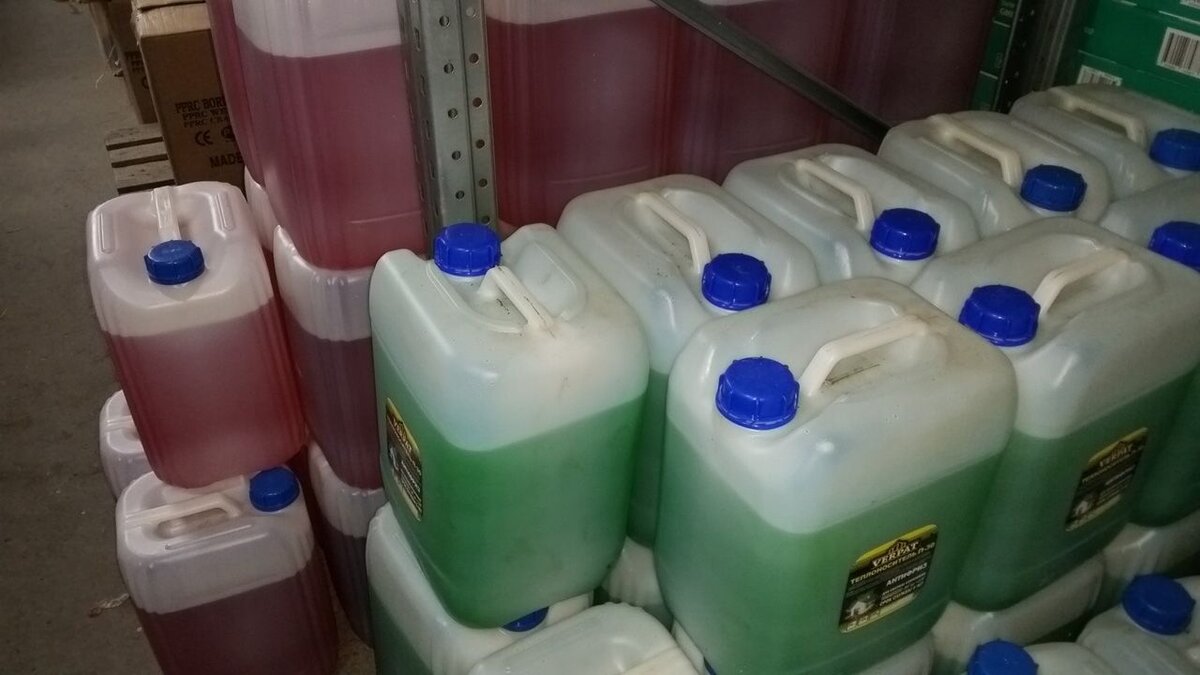Теплые полы из-за низкой температуры теплоносителя и большой площади поверхности полов – это самый эффективный способ отопления дома. Оказывается, на их эффективность будет влиять параметр как тип теплоносителя. Не все заливают воду в теплый пол из-за того, что дом, например, не круглогодичного проживания. Или думают, что при отключении электричества на длительный период, вода в трубах замерзнет. В основном, в таких случаях заливают в систему антифриз: этиленгликоль или пропиленгликоль. Это разновидности спиртов, бесцветные слегка маслянистые жидкости. Этиленгликоль замерзает при -13 гр. Но его водный раствор в пропорции 60% этиленгликоля и 40% вода – замерзает уже при -48,5 гр. Чистый пропиленгликоль замерзает при -60 гр. Но, обычно используют и его водный раствор с температурами замерзания до -55 гр. Цвет теплоносителя-антифриза определяет производитель, добавляя пигменты. Стоимость антифриза в канистрах для системы отопления дома – примерно 2500 руб./20л. Стоит упомянуть, что этилен