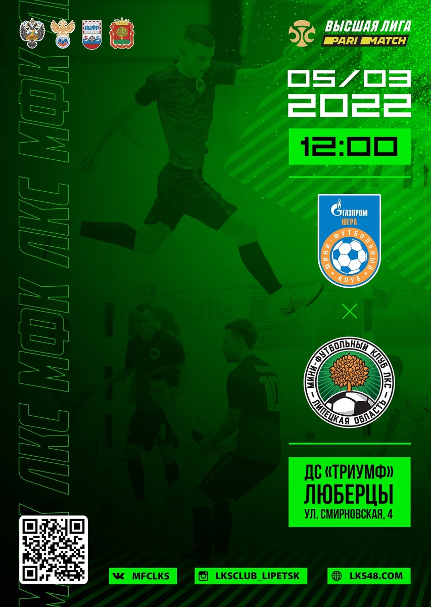 Мини-футбольный клуб ЛКС в 22-м туре Париматч-Высшей лиги встречается в Люберцах с МФК "Газпром-Югра-д". Игра состоится в субботу, 5 марта. Начало матча в 12:00 (мск). Ближайший соперник мини-футбольного клуба ЛКС после 21 игры занимает 10-е место в турнирной таблице Париматч-Высшей лиги и ведёт борьбу за место в зоне плей-офф. История команды