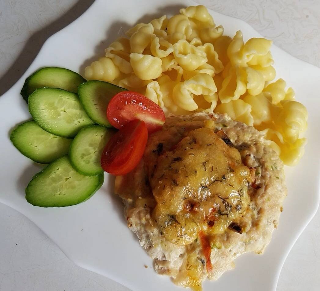 Для тех кто любит вкусно , быстро и сытно очень рекомендую. Лучше один раз приготовить чем много раз посмотреть. Ингредиенты: Грудка куриная на кости, Кабачок, Лук, Чеснок, Яйцо куриное, Соль, Специи для фарша, Начинка, Лук, Морковь, Соль, Шампиньоны, Сыр , Укроп Способ приготовления: Фарш готовлю сама, не покупной, с грудки срезаю мякоть и пропускаю через мясорубку, также перемалываю лук, чеснок и кабачок. Если будет сильно влажный фарш можно добавить 1 ст. л псиллиума. Добавляю яйцо, соль, специи. Тщательно перемешиваю и формирую шарики, укладывая на противень, придавливаю середину дном стакана, получаются углубления. Готовим начинку, в сковородку добавляем масло растительное, томим на медленном огне лук, морковь, грибы, немного солим. До готовности. Выкладываем готовую начинку в формы из фарша. Сыр трём на крупной тёрке и перемешиваем с укропом. Выкладываем поверх начинки. Отправляем в духовку с режимом низ на 20 минут при 180°, затем переключает верх-низ ещё 20 минут. Приятного апп