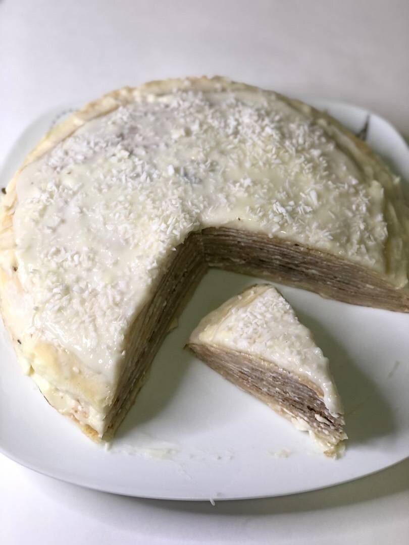 #масленица #блинныйторт #блины Масленичная неделя🥞🥞 В народе Масленицу называют “блиноедкой”. Блины пекут каждый день, начиная с понедельника, угощают ими всех и каждого и наедаются сами. Угощаю Вас своим рецептом 🔥. Торт очень нежный, похож на мороженое😋 Отличное сочетание кокоса и творожного сыра 🤍 Вкусный и просто приготовить. Блинчики можно испечь заранее. Порадуйте своих любимых 👩🏽🍳. Ингредиенты: Тесто:, яйцо куриное, мука пшеничная, молоко тёплое, сода питьевая, для жарки растительное масло, соль, сахар, кокосовая стружка, Крем:, творожный сыр «Хохланд», сахарная пудра, сгущённое молоко Способ приготовления: Подготовить все ингредиенты для приготовления блинного торта. Заранее приготовьте блинчики и оставьте остывать. На торт ушло 40 шт. Сыр переложить в глубокую миску. Добавить сахарную пудру, сгущённое молоко всё перемешать до однородной консистенции. Каждый блинчик смазать кремом и уложить на тарелочку. Верх посыпать кокосовой струйкой. Торт готов 👩🏽🍳. Приятного а
